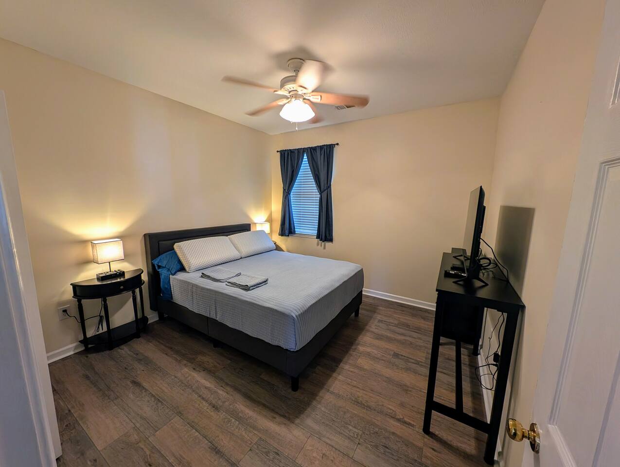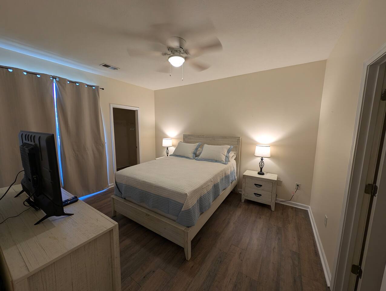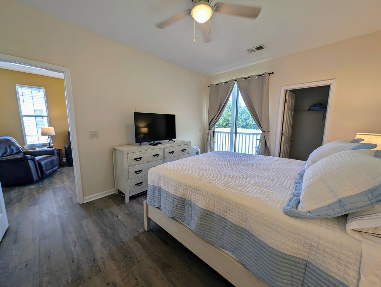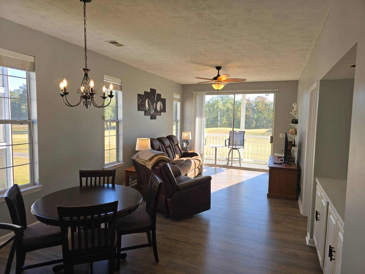 We have stayed in Airbnb properties and hotels for hundreds of nights. Our goal is to provide everything we felt was lacking in numerous properties we've stayed in. The livingroom features a recliner and a sofa with a motorized recliner on each end. The internet is the best package Spectrum in our area has to offer. It is gigabit down and 20Mbps up. Both bedrooms have queen size beds, lamps with usb charging ports, a TV and a ceiling fan. The master has a sliding door to access the balcony. The balcony is screened in, but does have a few gaps at the edges. The screens are meant to block stay balls from the golf fairway, not necessarily bug protection. There is a ceiling fan on the balcony to provide additional air movement. The kitchen has a stove, microwave, dishwasher and refrigerator. We have plates, bowls, glasses, utensils and pots/pans available in the cupboards/drawers. There is a full size washer and dryer to handle your laundry needs. The bathrooms will be stocked with towels, toilet paper, shampoo/conditioner and soap. Extra pillows and blankets will be in the closet if needed. We live approximately 10 mins away from this unit, so we are close by if you encounter any problems.